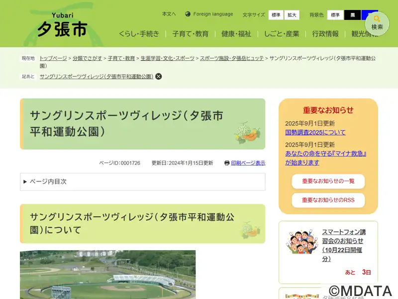 | 住所 | 夕張市平和1 夕張市平和運動公園 |