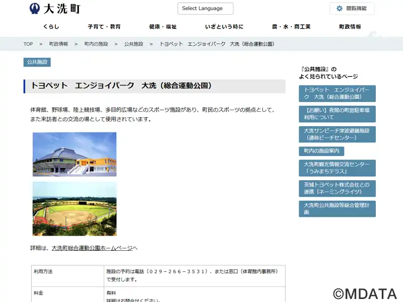 茨城県東茨城郡の大洗町総合運動公園内に、1991年に開場した野球場。両翼98m、センター120mの内野土舗装、外野天然芝のグラウンド、パネル式スコアボード、最大1,700人収容可能なスタンド席と外野芝生観覧エリアを備える。硬式球の使用も可能で、社会人クラブチーム茨城トヨペット硬式野球部の試合や練習、各種大会で利用される。2021年から、茨城トヨペットが命名権取得。正式名、大洗町総合運動公園野球場。