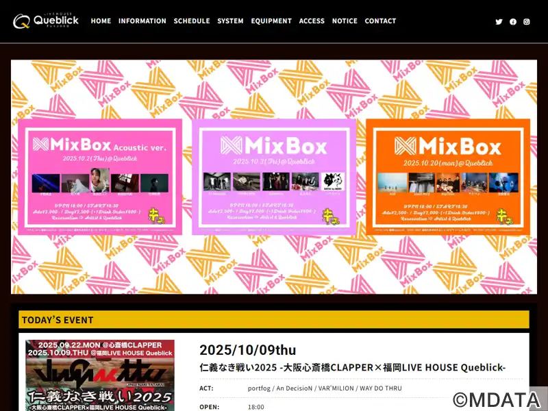 福岡大名の地下鉄赤坂駅からすぐの場所に2013年オープンしたライブハウス。最大200人を収容でき、地元福岡のインディーズからプロのミュージシャンまで幅広いアーティストのライブを開催する、福岡音楽シーンの中心地。看板企画「Mix Box」などの定期的なイベントを開催し、さまざまなジャンルの枠を越えた音楽を楽しめる。ライブ以外にもDJイベント、映画上映にも利用される。天神地区に姉妹店「OP’s」もあり。