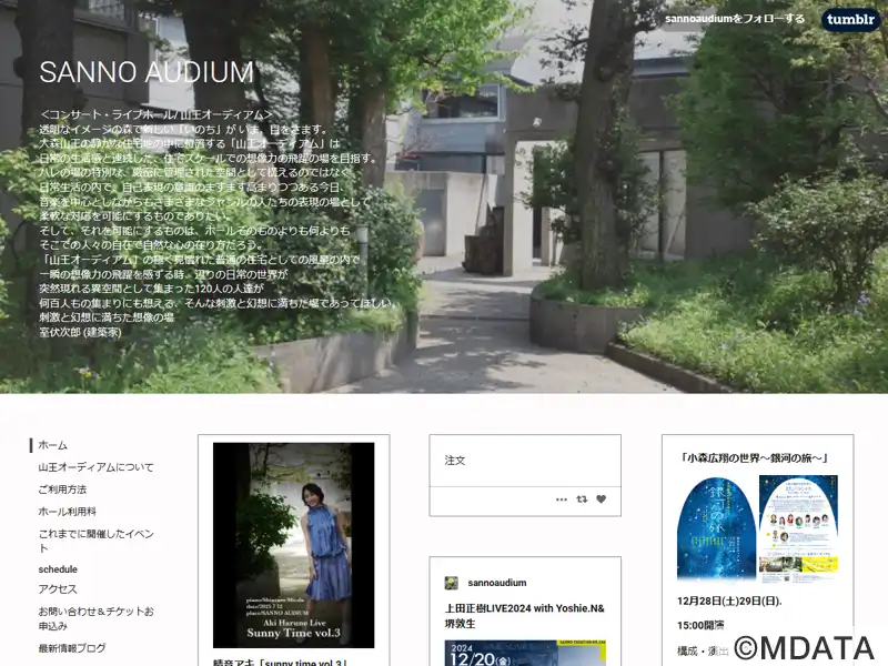 東京都大田区の大森駅から徒歩約10分の場所にある、自然豊かなガーデンに囲まれた多目的ホール。ドーム型の高い天井と無垢のコンクリート壁が特徴で、自然光が十分に射し込む約100席のコンサートサロンを備える。スタインウェイベヒシュタインのピアノを常設し、リサイタル、バロック音楽、アンプラグドなライブに最適な環境を提供。最新の高性能機器を完備した調整室も完備し、本格的なレコーディングや撮影にも対応する。