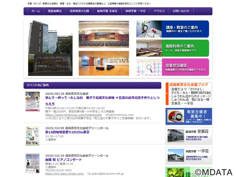 東久留米市に1997年に開館した多目的施設。文化会館や林間・臨海学校を経営する公益財団法人東京学習センターによる運営で、教育・文化・福祉の向上と地域社会の発展を目指している。成美グリーンホールには移動観覧席と舞台、グランドピアノがあり、コンサート、講演会、各種イベントに利用されている。その他、ギャラリー、音楽室、研修室、和室、茶室、会議室などが用意され、さまざまな教室や文化活動に活用されている。