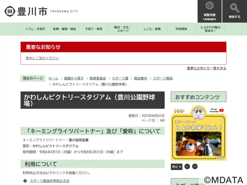| 住所 | 豊川市諏訪1-79 豊川公園野球場 |