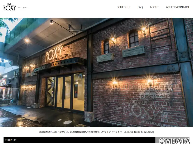 静岡市のJR静岡駅近くに2018年開業の大型ライブホール。店名ロキシーは1950年代イギリスの映画館チェーン「ROXY」と、著名アーティストを輩出した「THE ROXY THEATRE」に由来する。最新の照明・音響システムを備え、イベントに応じた多彩なフロア・ステージレイアウトが可能。音響には国内ライブハウスで初めてドイツ製「CODA AUDIO」を採用し、透明感のあるサウンドと圧倒的な出力を実現。