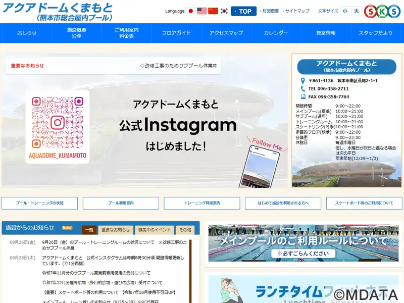 1998年7月オープン。1999年くまもと未来国体夏季大会メイン会場に用いられた「熊本市総合屋内プール」、愛称アクアドームくまもと。夏季はメインプール(50m)、秋季は多目的フロア、冬季はスケートリンクとして使用され、水泳競技、フィギュアスケートやアイスホッケー、バスケットボールなど幅広いスポーツの大会、大相撲熊本場所やディズニーオンアイスなど開催。2019女子ハンドボールのサブメイン会場。2023年度よりネーミングライツ導入