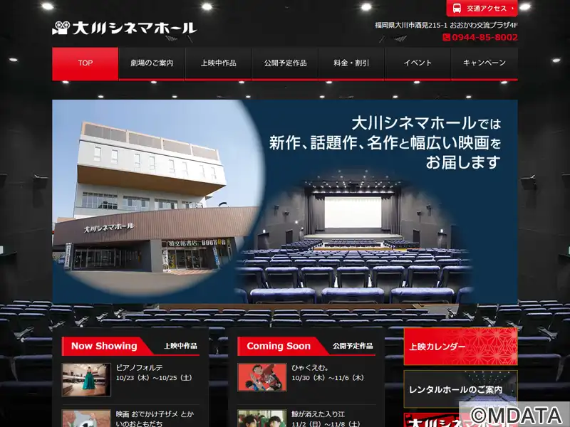 福岡県大川市「おおかわ交流プラザ」4階に2015年オープンした映画館。大型スクリーンとJBLの高品質なサウンドシステムを完備する。スタジアム形式の客席は、ゆったりとしたスペースと快適なシートが特徴。ロビーには大川市の伝統工芸である「大川組子」がデザインされ、木の温かみが漂う落ち着いた雰囲気でくつろげる。また、レンタルホールとしてトークショーやセミナー、コンサートなど様々なイベントにも利用できる。