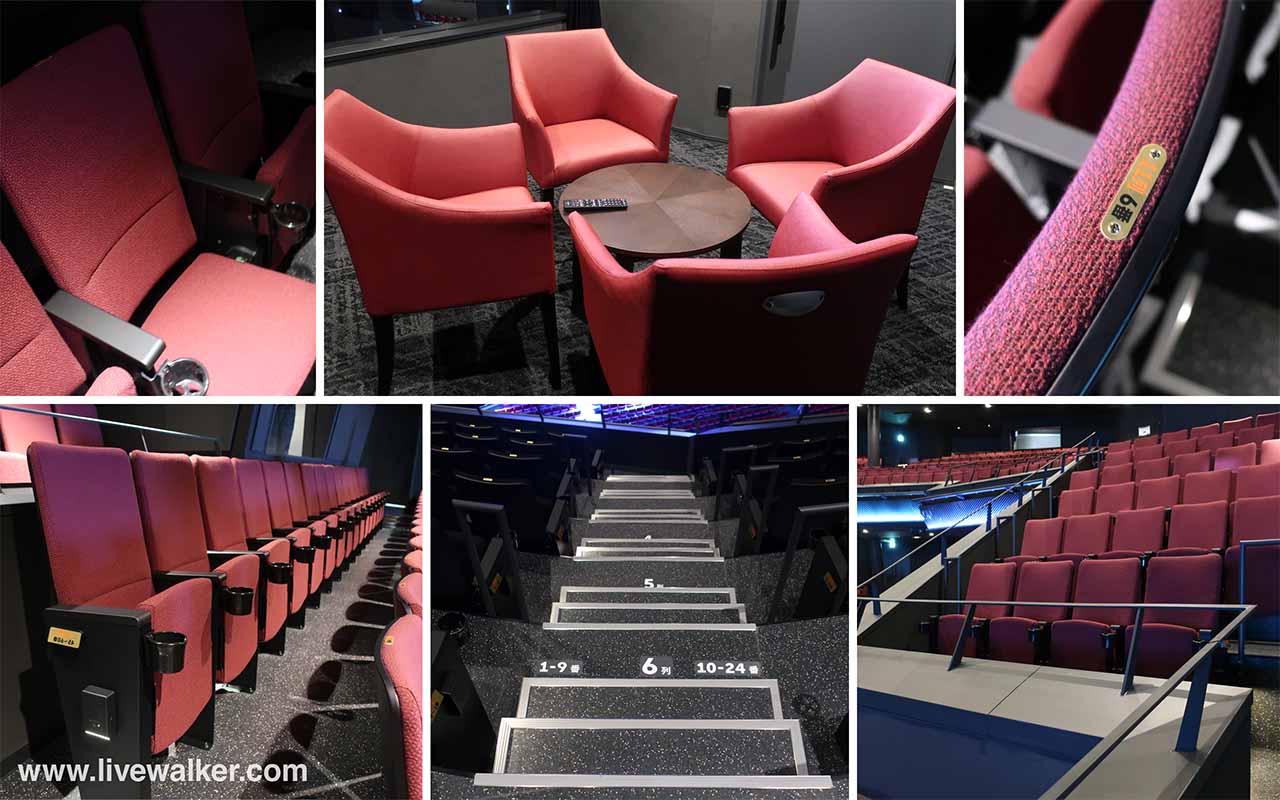 座席は、落ち着いた色調の座面跳ね上げ式シートで、右側肘掛けにカップホルダーが設置されている。VIP席は3階と4階に計4部屋あり、2階には車いす席と同伴席、バルコニー席も設けられ、さまざまな来場者が安心してイベントを楽しめる環境を整える。
