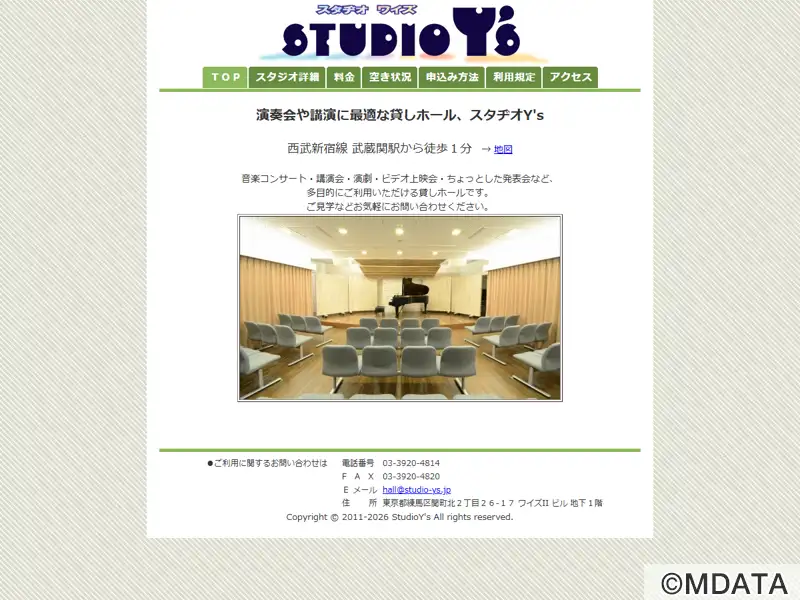 東京・練馬区の武蔵関駅から徒歩1分の場所にある多目的貸しホール。音楽コンサート、講演会、演劇、ビデオ上映会など、幅広いイベントに対応できる。130インチのフルHDプロジェクターやヤマハのグランドピアノ(S4B)を備え、60席の観客席は移動可能で、様々なレイアウトに対応可能。さらに、録音・再生機器や音響調整設備も完備し、リハーサル室も併設。質の高いイベントをサポートするための充実した設備が整っている。
