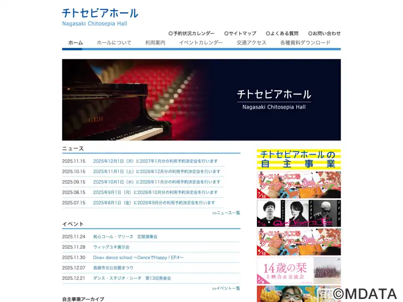 長崎市千歳町の複合施設チトセピア2階に1991年に開館した文化施設。最大500名収容の多目的ホールで、市民による演劇活動の発表や鑑賞、創造・交流・教育の場として活用されている。可動式の客席を備えており、壁面に収納することでフラットなスペースとして、練習場やイベント会場、アトリエとしても利用可能。地域の方々や文化団体、近隣の学校、NPO団体と協力して、地域に根ざした人々に愛される施設を目指している。