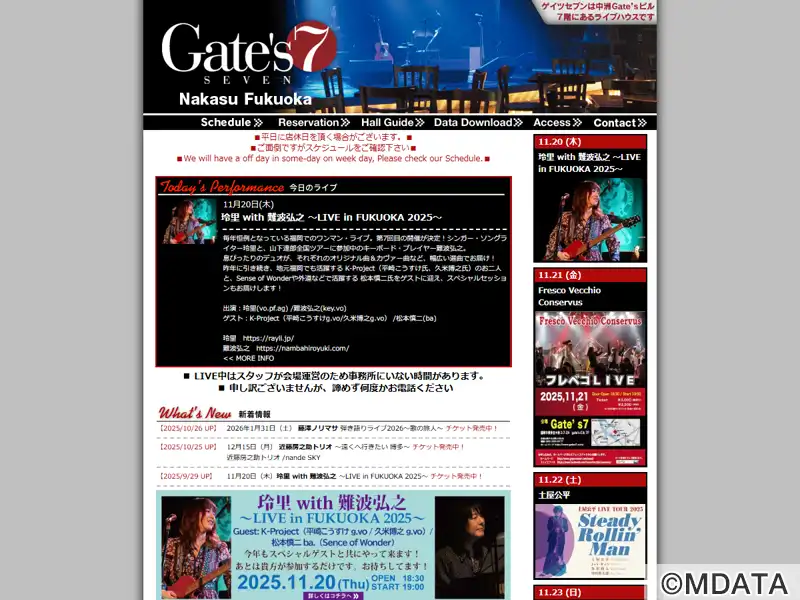 福岡中洲のGate'sビル7Fにある大人のためのライブハウス。ランプの灯りとレンガ壁のおしゃれな雰囲気が特徴。最大150席を設置できるライブバースタイルのテーブル席に、広いステージとプロ仕様の音響・照明、グランドピアノヤマハC7を備える。ジャズ、ロック、ブルース、ソウルなど、多彩なジャンルの国内外のミュージシャンによるライブが展開される。歓迎会や二次会、飲食メニューを含む貸し切り利用も可能。