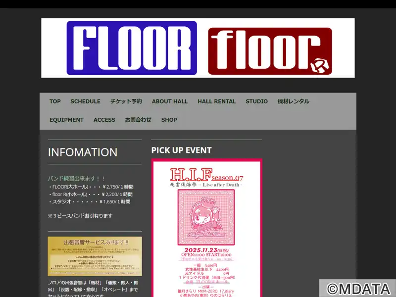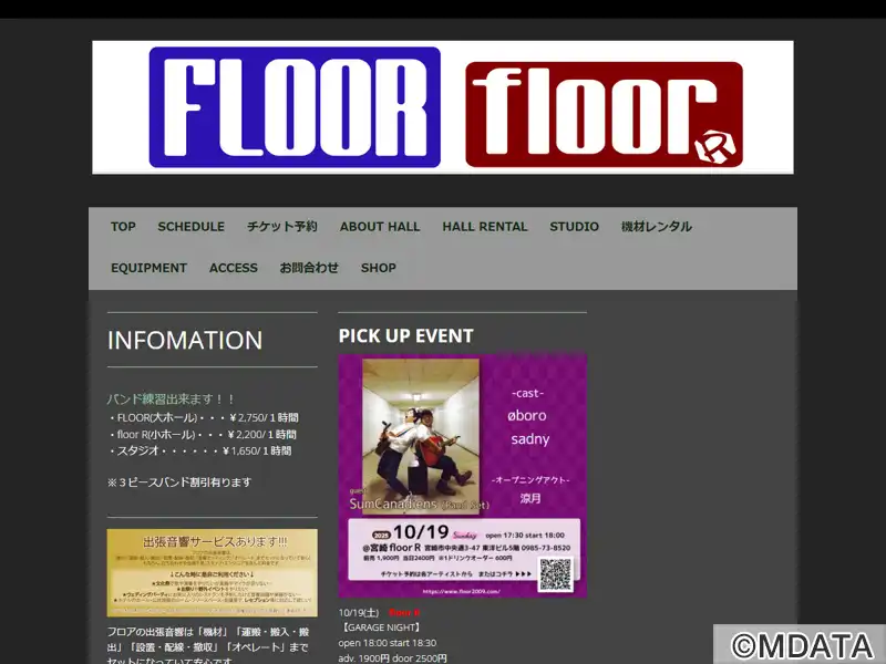 宮崎市中央通りに、2009年にオープンしたライブスペース。ダイナミックなサウンドが特徴のキャパ400人の大ホール「FLOOR」と、キャパ100人の手頃な小ホール「floor R」があり、フェス会場としても利用できる。ライブやDJ・ダンスなどで大型スクリーンを使った演出にも対応。併設するスタジオは、バンド練習や個人練習に最適で、ホールのステージを利用しての練習や、本番さながらのライブリハーサルも可能。