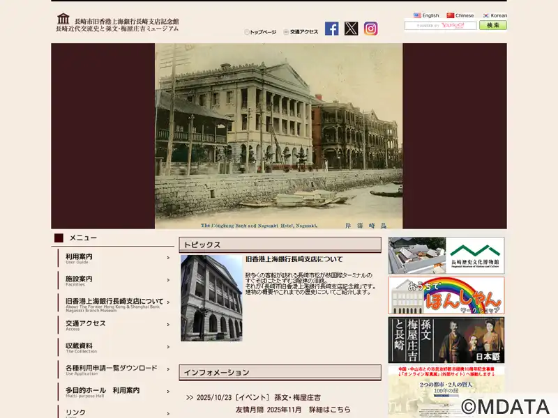 長崎市にある1996年10月に開館した、長崎の近代交流史や孫文・梅屋庄吉を紹介する建築物は、明治37年に建てられたコリント式の円柱をもつ、ギリシャ神殿風の重厚な石造りで、国指定重要文化財となっている。1階には銀行を復元した多目的ホールがあり、グランドピアノや音響・照明設備を整え、モダンレトロな雰囲気の中で、ジャズやクラシックのコンサート、ピアノ発表会の他、結婚披露宴や舞台練習として利用されている。