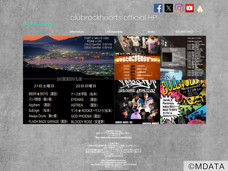 長野・上諏訪のライブハウス「CLUB ROCK HEARTS」。JR上諏訪駅から徒歩5分、2階にスタジオを併設したビル3階に2009年4月オープン。諏訪エリアの音楽シーンを盛り上げるべく、地元ミュージシャンやツアーバンドによる様々なジャンルのライブを開催。通常LIVEブッキングはもちろんバンドや学生さん主催の企画イベントをサポート。