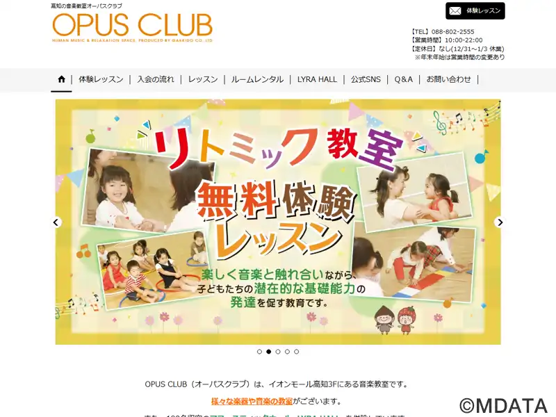 イオンモール高知3Fの音楽教室「オーパスクラブ」内にあるアコースティックホール。スタインウェイピアノB型常設で、クラシックやアコースティックのコンサートや発表会、配信ライブや動画撮影に対応する。また、個人での練習やグループアンサンブル練習などに利用できる10部屋の練習室も完備。大部屋は最大20名入室可能で、グランドピアノも2部屋に常備。ピアノ、ギター、ベース、ウクレ、ボーカルなどのレッスンも開講。