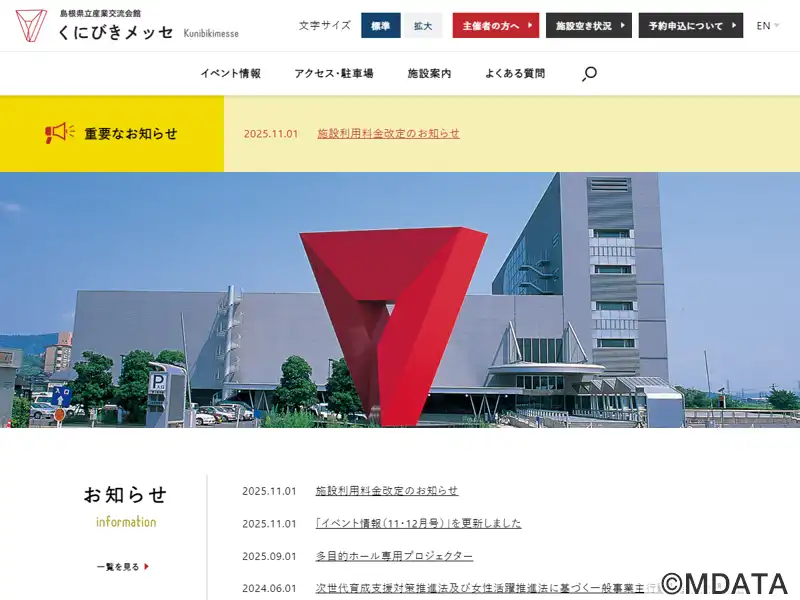 島根県松江市に1993年8月竣工した島根県立の6階建てコンベンション施設。設計は建築家高松伸氏によるもので、出雲にこだわったデザインが内外観に施されれている。大メインの大展示場、多目的ホール、小ホール、国際会議場、大小会議室など多くの施設を備え、県内の産業振興を目的に、地元企業や産業団体の展示会やセミナー、イベントなどが開催されている。施設名は出雲国風土記の「国引き神話」に由来する。正式名、島根県立産業交流会館。
