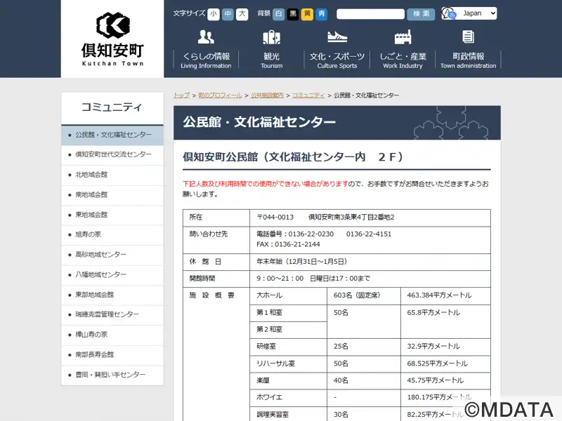 北海道後志管内にある、倶知安町民の生涯学習、文化活動、福祉サービスを支援する公共施設として1974年に開館。施設内には、本格的な舞台鑑賞ができる大ホールがあり、コンサートや講演会、市民の発表会などに幅広く利用されている。また、町民の文化サークルなどの活動拠点として、中ホール(200名)、リハーサル室、和室、調理実習室、会議室、研修室を備え、3階には図書室、後志教育研修センターが併設されている。