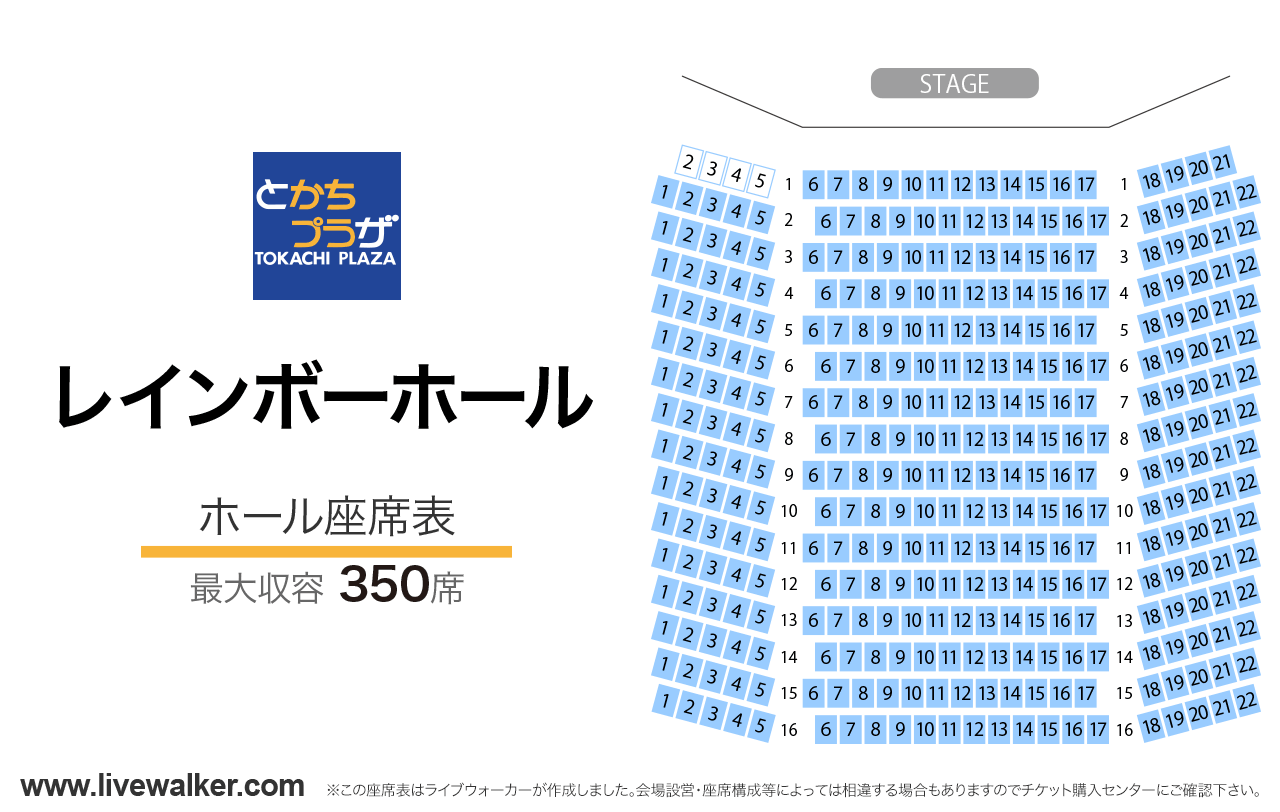 北海道帯広駅南口前に、生涯学習や芸術・文化交流の拠点として1995年に開館した複合公共施設。レインボーホールは、道内でも有数の音響効果を誇る木調の音楽ホールで、350席の客席と一体感のあるオープン形式のステージを備え、コンサートや発表会、講演会などに利用されている。地下に音楽スタジオと音響調整室を完備。吹き抜け空間のアトリウムでは、無料コンサートも開催され、地域に根ざした音楽事業を展開している。