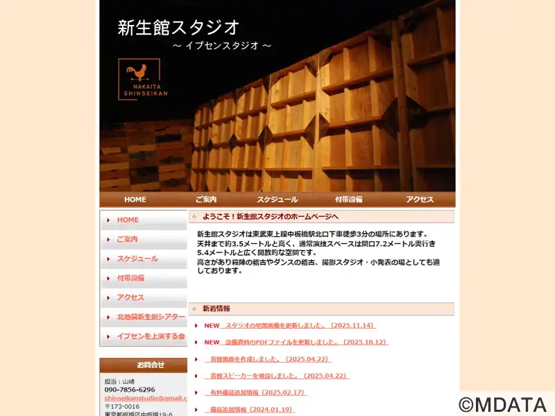 東京都板橋区の中板橋駅北口から徒歩3分にある劇場・スタジオ。天井高3.5〜3.7メートルの開放的な空間に、間口7.2m、奥行き5.4mの演技スペースを備える。階段式の客席に照明・音響ブースを完備し、椅子やテーブルも使用できる。大がかりな舞台セットの設営も可能で、殺陣の稽古、ダンス、撮影や小規模な発表会に適している。前日の搬入や翌日の撤去作業のサービスもあり、使い勝手の良い劇場として活用されている。