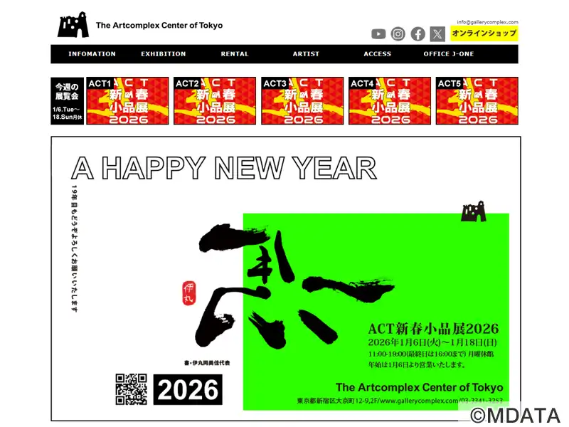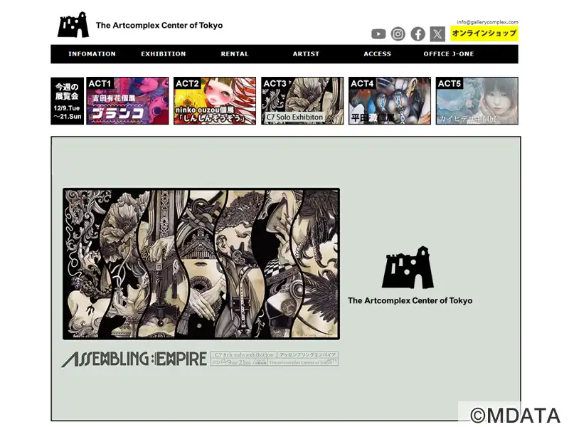 新宿区大京町の住宅街(最寄り駅は信濃町/四谷三丁目)に2007年オープン。The Artcomplex Center of Tokyo (ACT)はギャラリー・コンプレックスを設計コンセプトに、地下1階に約100坪のアートコンプレックス・ホール、2階に5つのギャラリースペース(ACT1~5)、1階にカフェを設置。企画展や公募展を中心にレンタルスペースとして撮影やイベントなど様々な用途に利用可能。