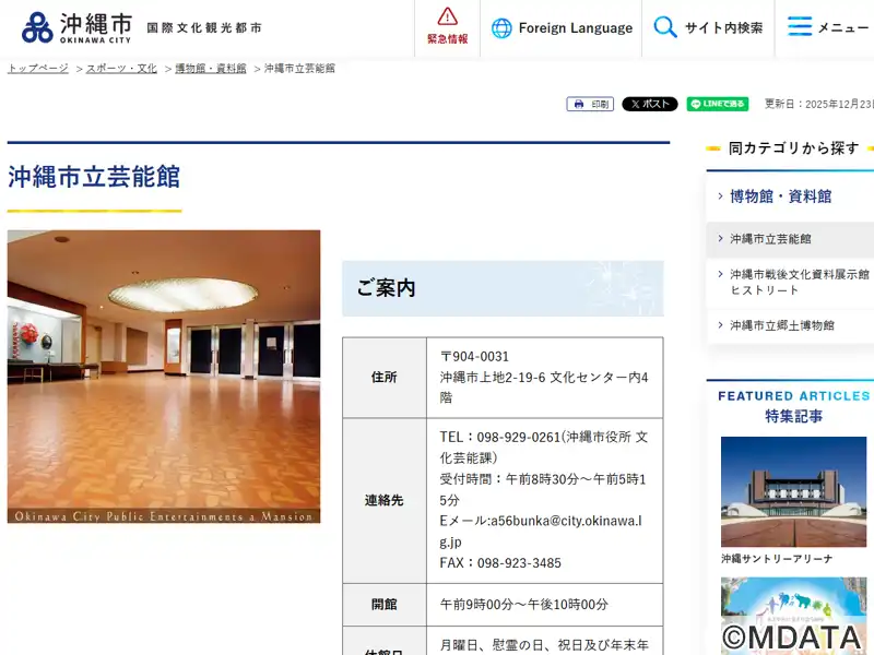 | 住所 | 沖縄市上地2丁目19-6 沖縄市文化センター内4F |
