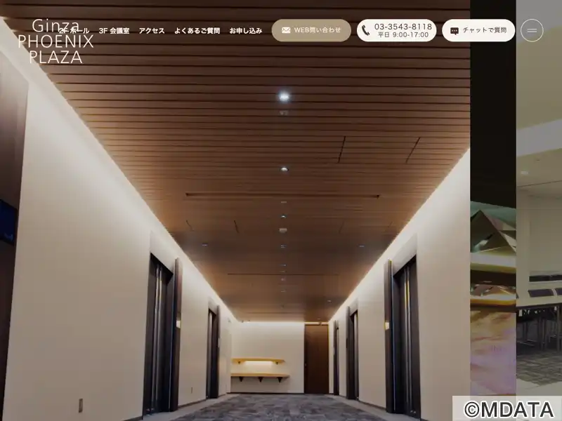 銀座駅・東銀座駅近く、暖かさと洗練性を兼ね備えた空間が特徴のイベントホール・貸会議室。2階のフェニックスホールは発表会や会議、展示会や懇親会など、多目的に利用できるイベントスペース。ラグジュアリな大理石のエントランス空間を備え、一つの広いフロアで音響・映像・照明も一か所で操作できる。搬入用エレベーター、液晶プロジェクター、大型スクリーン完備。3階には連結・組み合わせ可能の全7部屋の会議室がある。