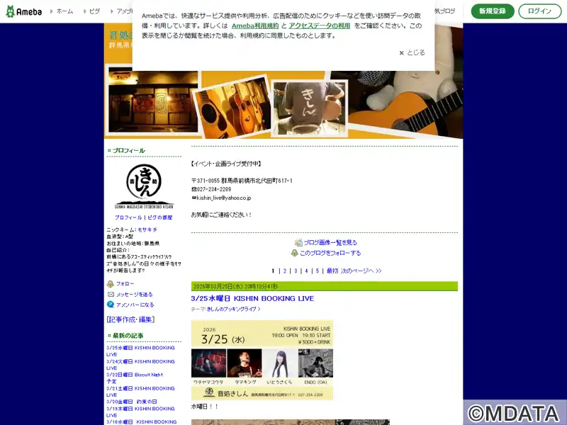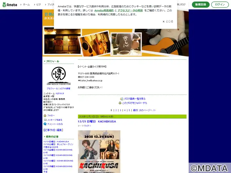 群馬県前橋にあるアコースティックライブハウス。フォーク、ブルース、ニューミュージック、ジャズなどのジャンルが演奏され、大人の溜まり場としても親しまれている。50代・60代には懐かしい青春時代がよみがえり、20代・30代は新鮮な音楽との出会いに、世代を超えて盛り上がっている。地元のミュージシャンを紹介するラジオ番組「きしん伝心」(まえばしCITYエフエム)も放送中の地域に密着した音楽文化の拠点。