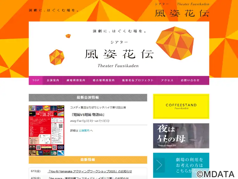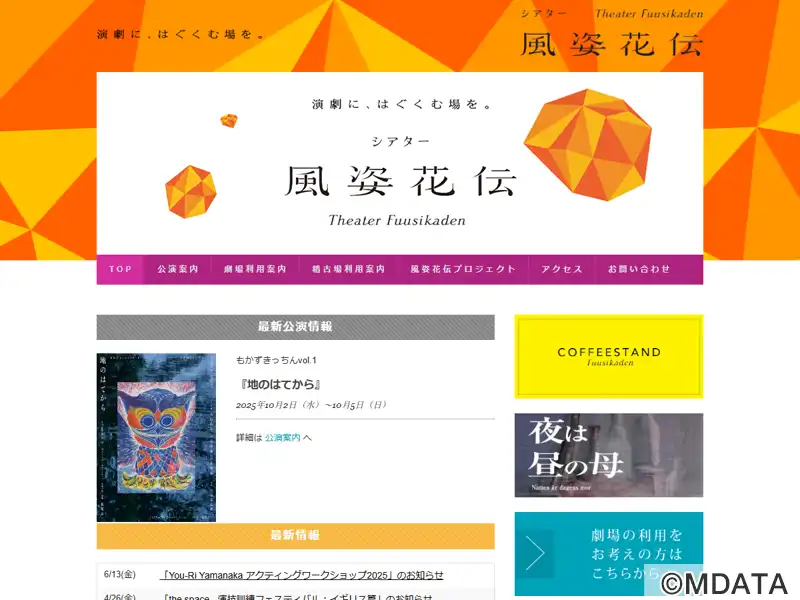 2003年にオープンした、最大120名収容の小劇場。地下1階には稽古場が併設する。「若い才能が集まる劇場であり、良質な作品作りを応援する劇場」を目指し、多彩で質の高い公演を上演する。女優の那須佐代子氏が支配人を務め、「風姿花伝プロデュース公演」や、レジデント・アーティスト、プロミシングカンパニー制度などを通じて、劇場とアーティストの信頼を基盤に、継続的に演劇の可能性を探求する取り組みも行っている。