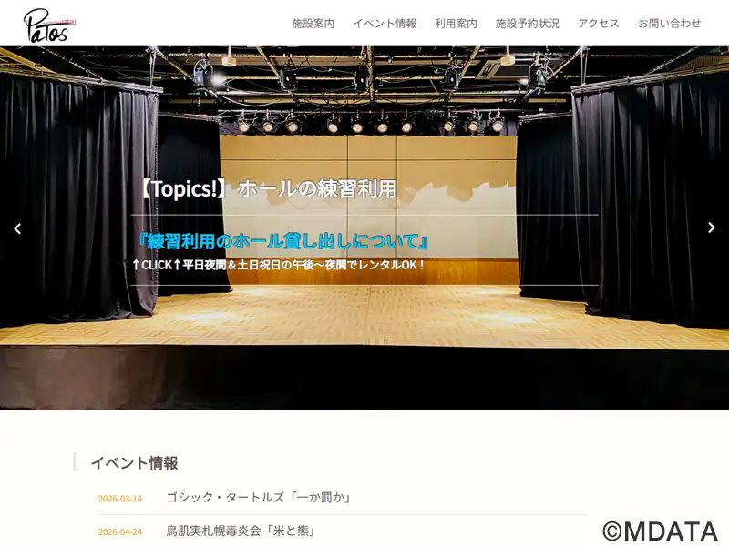 札幌市における芸術・文化活動をサポートするために開館した市営の多目的施設です。99席のホールは固定席を持たないフラットな空間で、音響・照明設備と可動式ステージを備え、音楽ライブや演劇、ダンス、展示会など多様なイベントに対応する。また、スタインウェイのグランドピアノを設置したギャラリーや、音楽やダンスの練習に適した3つのスタジオも完備。ギャラリーは控室としても利用できるなど、柔軟な利用に対応している。