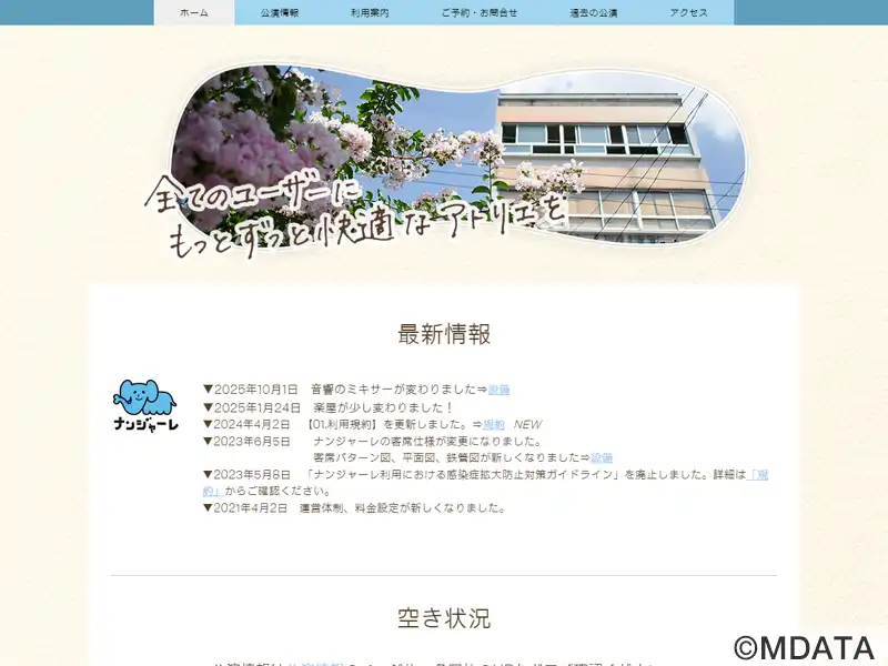 「沢山の人に、快適な演劇活動を」そんな思いから設立されたスタジオ「ナンジャーレ」。ホールは客席常設型(客席60名、桟敷席追加で最大80名)。“手ぶらで来られる演劇スタジオ”をモットーに、演劇公演はもちろんお笑いライブ、撮影、ワークショップなど多用途に利用可能な設備をご用意。名古屋駅新幹線口から徒歩10分。地下鉄亀島駅から徒歩6分。2Fで靴を脱ぎ、4Fまでお越し下さい。2021年4月リニューアル。