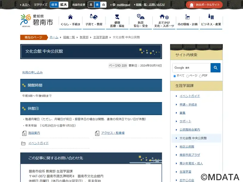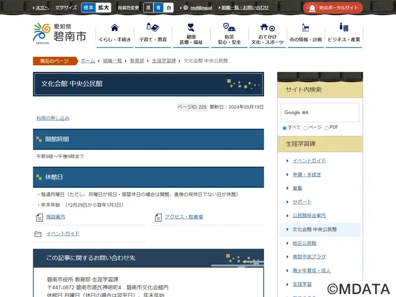 | 住所 | 碧南市源氏神明町4 中央公民館 |