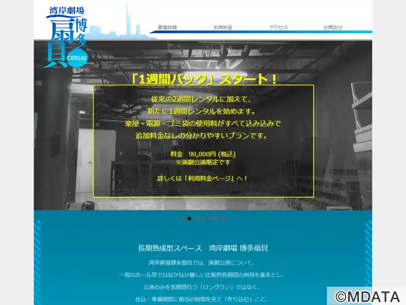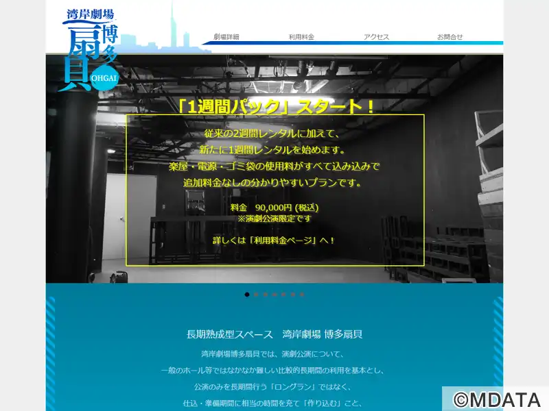 福岡サンパレス内に、2008年11月に開館した演劇公演用の小劇場。「長期熟成型スペース」を掲げ、比較的長期間の利用を基本とした利用メニューで、仕込みや準備期間を十分に考慮し、「作り込む」ことを目的とした演劇公演をサポートする。また、使い方は、主催者のアイディアによって決定される扇形のスペースを用意し、新たな創造力を十分に発揮できる環境も提供する。音楽・映画上映・トークイベントなどでは短期での利用が可能。