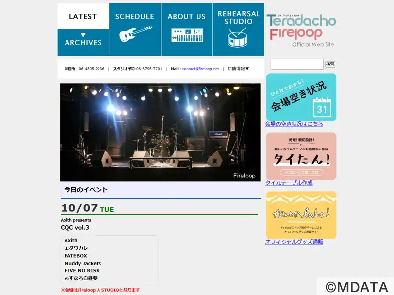 大阪市の寺田町駅近くに2010年オープンしたライブハウス。モダンとトラディショナルな雰囲気を融合させ、どこからでも見やすい高い天井とステージ、パワフルなPAシステムと照明設備を備え、あらゆるジャンルの音楽に対応する。演者の快適さも考慮した設計で、楽屋や動線もスムーズ。また、音楽スタジオ「Fireloop Studio Japan」として、音質の良い10畳の3部屋を用意。入会費・年会費なしで利用できる。