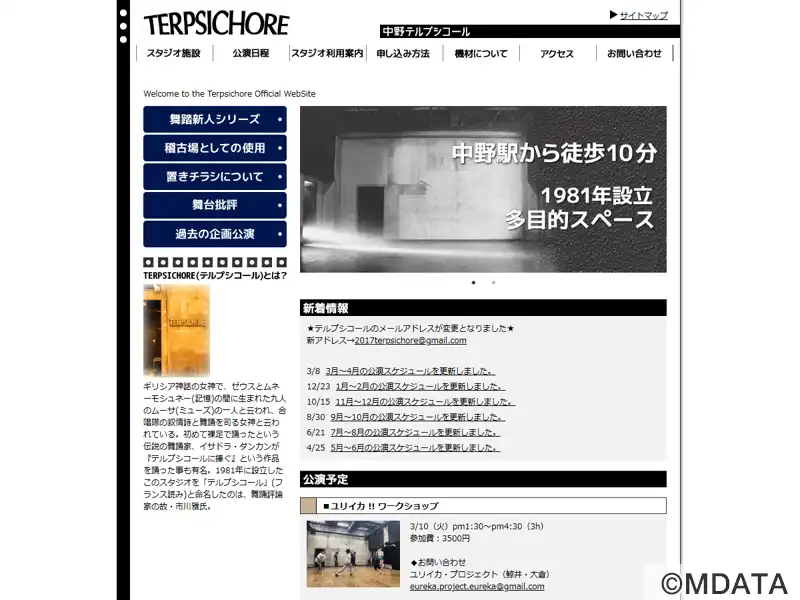 1981年に設立された、舞台公演や稽古場として利用されている多目的スペース。名前の由来は、ギリシア神話の舞踊を司る女神「テルプシコール」からきており、舞踊評論家の市川雅氏が命名した。天井高4.5mの舞台は、最大100席の移動席を備えたフラットスペースで、良質な桜材を使用したフロアに、グランドピアノが常設されている。また、舞踏の新人たちのための「舞踏新人シリーズ」を1985年から毎年開催している。