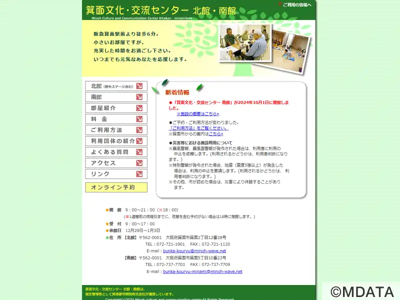 1979年竣工の複合ビル「みのおサンプラザ1号館」内にある市民の文化と交流の拠点となる公共施設。大会議室は定員200人のフラットスペースで、グランドピアノ、スクリーン、音響機器、可動ステージを備え、発表会やミニコンサート、コーラスや吹奏楽、オーケストラ練習に利用されている。音楽スタジオ5部屋を完備。※建替えにより2024年3月末で約3年間の休館。工事期間中は代替施設(北館・南館)を活用する。