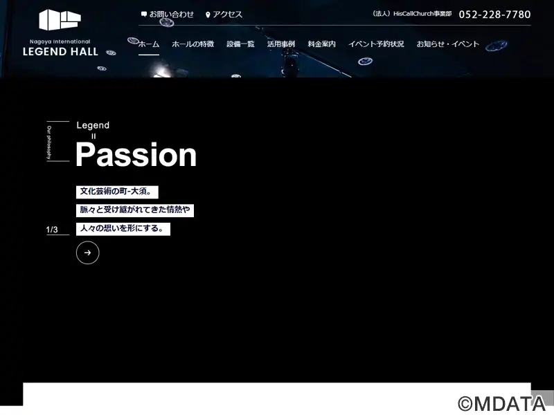 名古屋市の大須観音駅近くに、2014年オープンしたイベントホール。ライブ、講演会、展示会、パーティーなど多様なイベントに対応する。2Fホールは最大300名収容。MIDASデジタルミキサー、L-ACOUSTICSラインアレイスピーカー、大型・中型2機のスクリーンなど高性能な設備を備え、演出の自由度が高い。ゲストルームなどの付帯設備も充実。1階にカフェスペースが併設され、飲食付きイベントも開催可能。