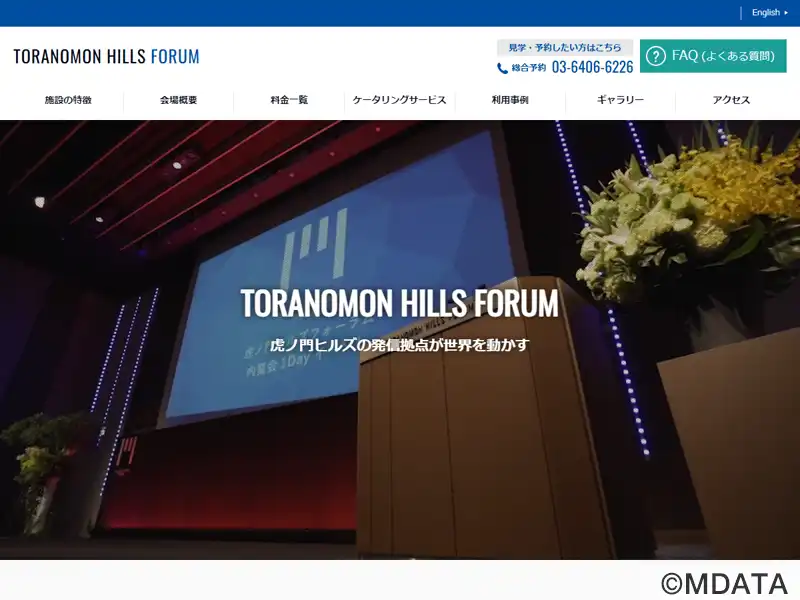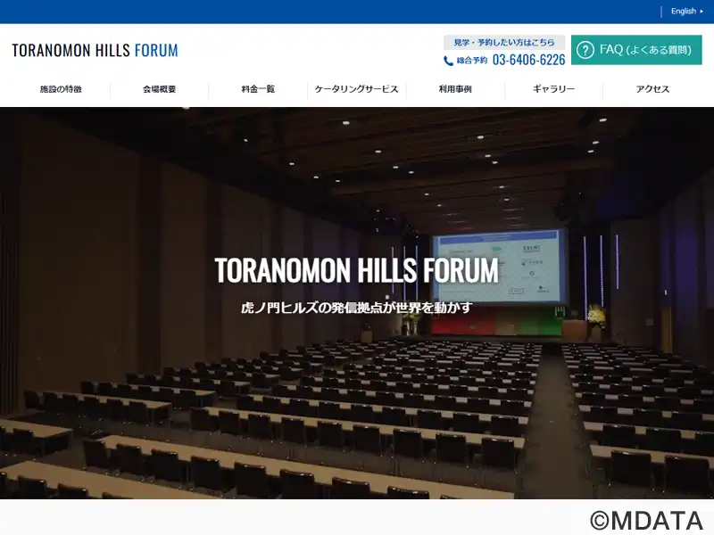 2014年5月竣工した地上52階の高層複合タワー虎ノ門ヒルズ森タワー内の4階・5階にある、3つのホールと4つのミーティングルームから構成される大型のカンファレンスセンター。新基準スマートカンファレンスセンターを掲げ、360インチスクリーンや電動バトンを備えたメインホール、全長50mのガラスカーテンウォールで開放的空間のホールA、約360m²のホワイエを併設したホールBなど多様なイベントに対応する。