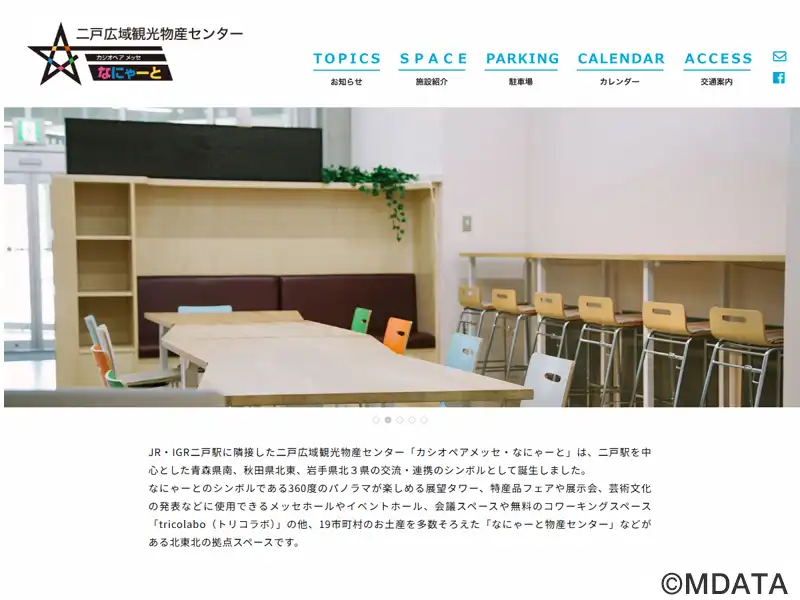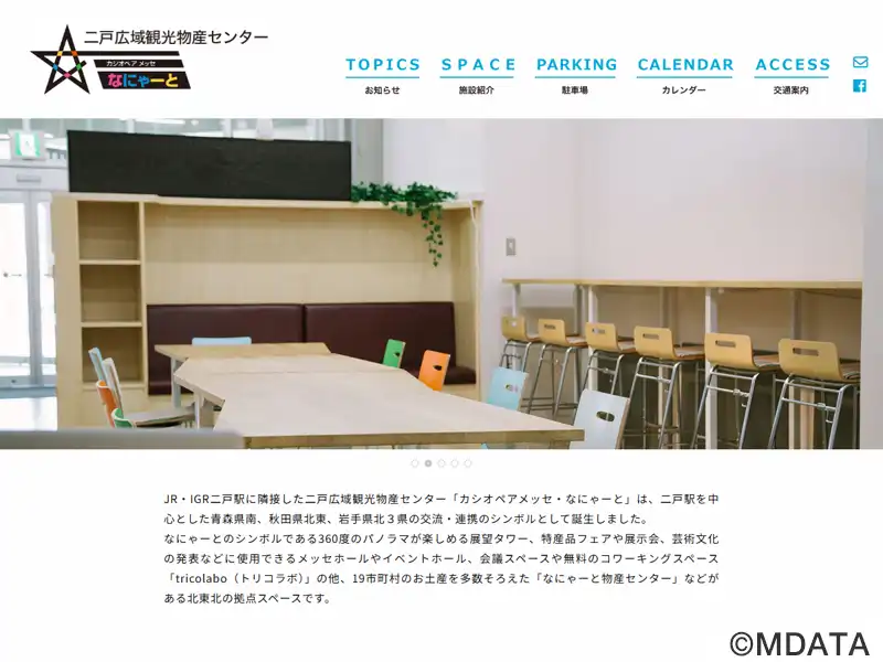 岩手県二戸市のJR・IGR二戸駅西口に位置する複合施設で、青森県南、秋田県北東、岩手県北3県の交流拠点として2002年に開館した。展望タワーからは馬仙峡を含む二戸市街地が一望できる。1階には、多目的催事場の「メッセホール」や、階段型ベンチを備えた「イベントホール」と「なにゃーと物産センター」があり、3階には会議室やサークルルーム、サテライトオフィスの他、無料のコワーキングスペースも設けられている。