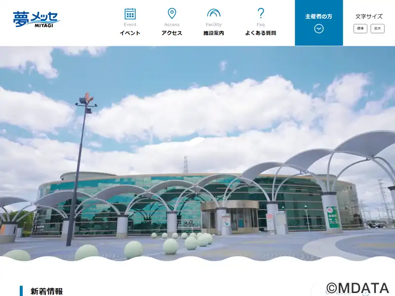 1995年10月に宮城県が仙台港に建設した大型コンベンションセンター。東北地方の産業振興と交流促進を目的としている。「展示ホール」は、3分割された広大な無柱空間で、合計床面積7,500㎡を誇る。スポーツ、音楽コンサート、ロックフェス、コミケ、懇親会などのビッグイベントが開催されている。2014年7月「西館」オープン。音響・照明設備が充実し、遮音性にも優れた西館ホール、展示場、会議室・研修室を備える。