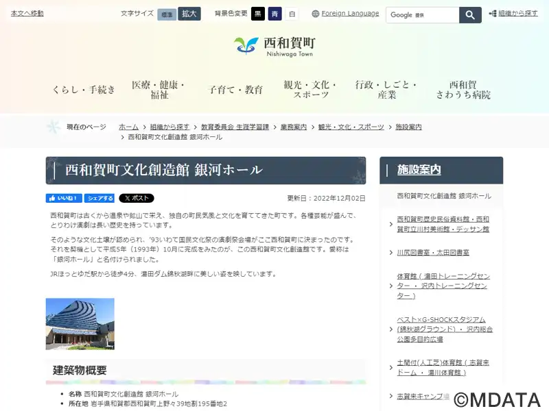 | 名称 | 西和賀町文化創造館 銀河ホール |