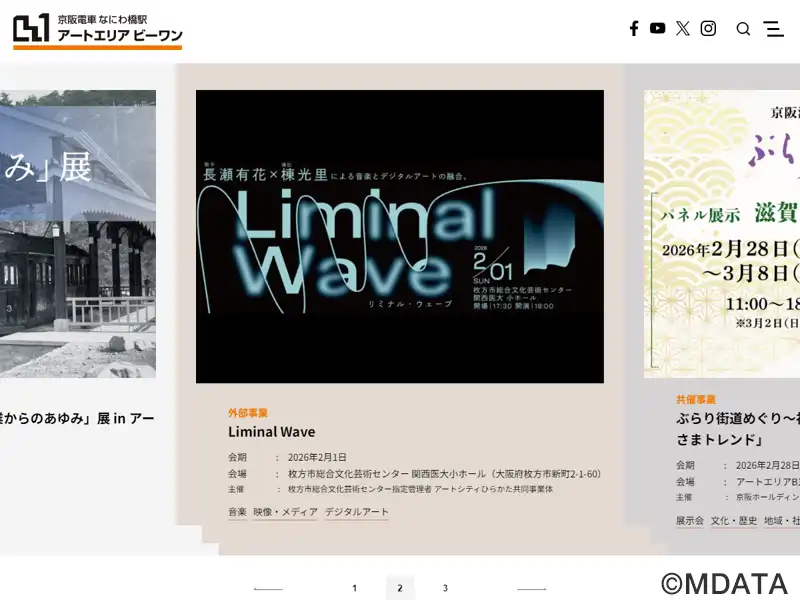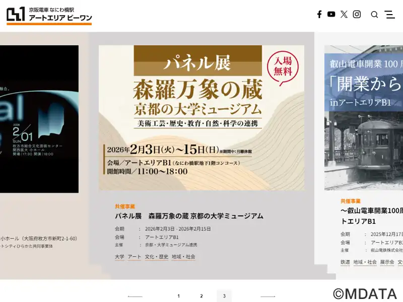 なにわ橋駅の地下1階コンコース内に開設されたコミュニティースペース。大阪大学+NPOダンスボックス+京阪電鉄が主催。参加型レクチャー&対話プログラム「ラボカフェ」、ダンスパフォーマンス「ブリッジシアター」、秋冬の一大イベント「鉄道芸術祭」を軸に、アート・デザイン、音楽、演劇、映像、哲学、鉄道、地域社会といった多岐にわたるジャンルのプログラムを展開。貸館も可能(約330㎡/選考審査あり)。