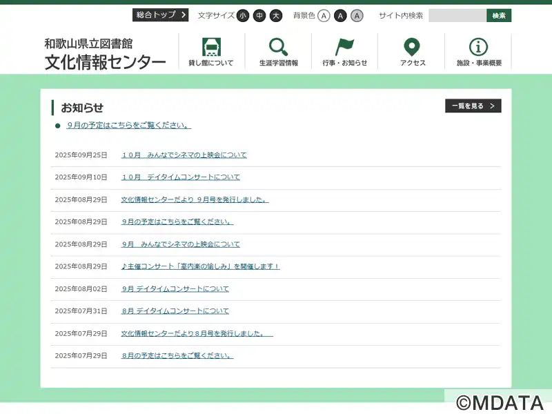 和歌山県民の文化活動や学習活動の支援を目的に1993年開館した、県立図書館・文化情報センター、公文書館との複合施設。愛称は「きのくに志学館」。2階のメディア・アート・ホールには、グランドピアノや200インチスクリーン、舞台照明を備え、コンサートや講演会などのイベントに利用されている。地域団体が活動を行うスペースも用意され、約13,000点の視聴覚資料を所蔵し、生涯学習に関連する講座も開催している。