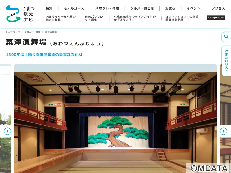 石川県小松市に昭和8年に建てられた木造2階建ての近代和風建築。松竹少女歌劇団や関西歌舞伎などの公演が行われた歴史ある劇場。粟津温泉街に残る歴史的な文化財として2014年リニューアルした。平土間席と桟敷席を合わせた収容人数250人。本花道があり、風情ある空間を演出している。落語寄席、大衆演芸、歌謡ショー、演劇、ジャズやロックバンドのライブなど多様なイベントが開催されている。貸し館も可能。