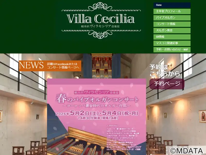 軽井沢の森の中にある、2007年設立のオルガン専用ホール。音楽の守護聖人である「セシリア」の名を冠している。座席数50席の中世ヨーロッパの礼拝堂の雰囲気を感じさせる空間で、オルガンコンサートに理想的な豊かな残響を持つ。また、日本で唯一の16世紀イタリア・ルネサンス様式のパイプオルガン(フランチェスコ・ザニン・オルガン工房製)が設置され、オルガンや歌のコンサートが開催されている。オルガン教室を開講中。