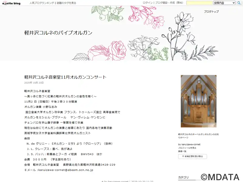 中軽井沢に2001年開館した、三角屋根の高い天井をもつ観客席80席のオルガンホール。正面のオルガンは、22ストップ2段鍵盤のベルナール・オーベルタン製パイプオルガンで、国内外のオルガニストによるコンサートが開催されている。古楽コンサートやバロックアンサンブルの演奏会も開かれ、チェンバロ、ヴィオラ・ダ・ガンバ、オールドハープ、リュートなどの演奏も披露される。ハイレゾ録音の会場としても使用される。