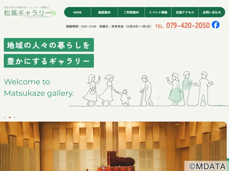 加古川市に1994年5月に開館した文化施設。ハリマ化成株式会社の創業者である長谷川末吉氏によって寄贈された。施設内には、室内楽コンサートや発表会に最適な100席のサロン風ホールがあり、市内唯一のベーゼンドルファー(92鍵、最低音FGは黒い白鍵)の美しい栗色のピアノが置かれている。1階には、美術、写真、工芸品などのための展示室がある。白い外観に黄色いモニュメント(作品名:光と風の環)が目印となっている。