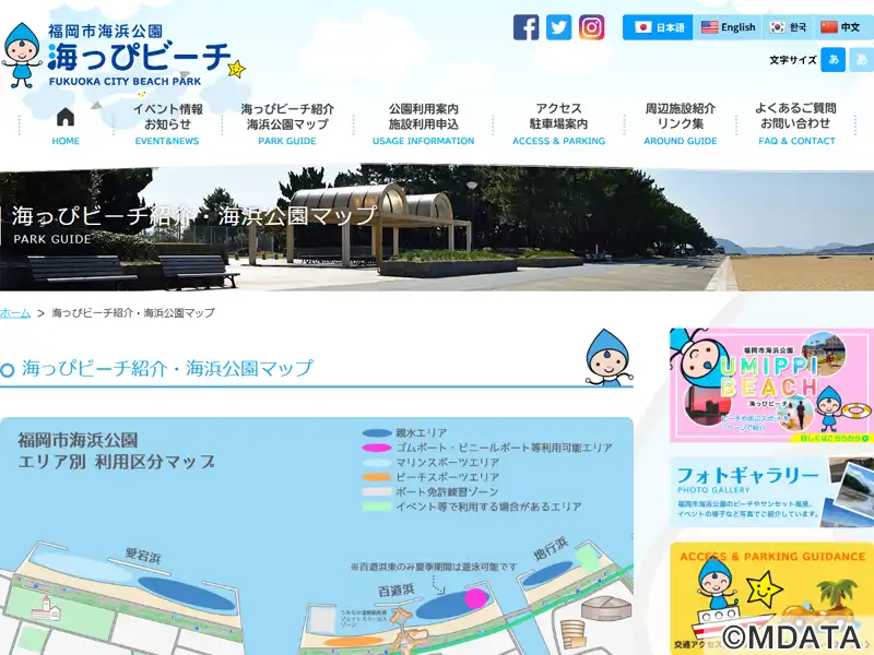 博多湾を眺望する百道浜・地行浜・愛宕浜地区の3エリアからなるビーチ、マリンスポーツが楽しめる人工ビーチ公園。福岡PayPayドーム北側の地行浜地区では、夏季シーズンはクリーンに管理されたビーチに特設ステージが設営され屋外会場となる。恒例ワールドビートフェス「イスラ・デ・サルサ」や、インディーズロックフェス「OTODACHI」、野外DJフェスなどの音楽イベントが行われるている。正式名、福岡市海浜公園。