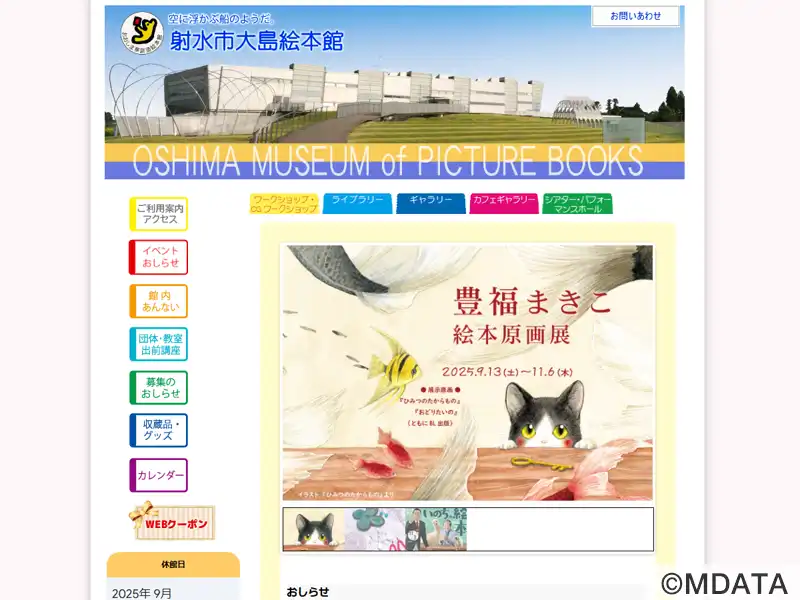 富山県射水市に絵本をテーマとして1994年に開館した文化施設。絵本を中心とした文化活動を促進する。30カ国からの絵本が収められたライブラリーや、絵本作家の原画展を行うギャラリー、絵本づくりのワークショップやCGワークショップなど、多彩なコンテンツが楽しめる。また、パフォーマンスホールでは紙芝居や人形劇をはじめとした様々なイベントが開催され、シアターでは絵本を題材とした発表や表現の場が設けられている。