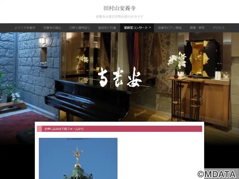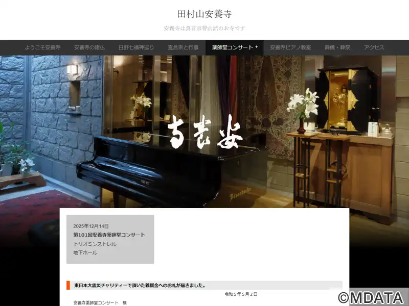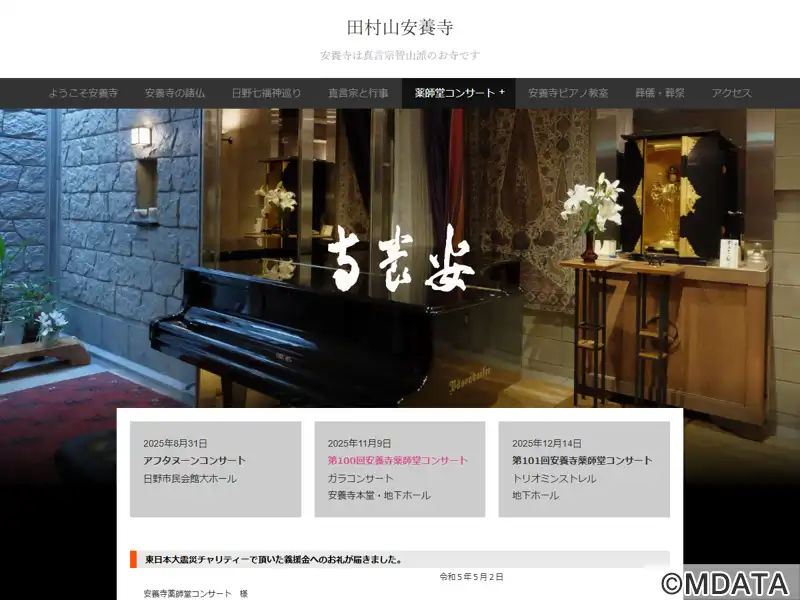 日野・万願寺にある真言宗智山派の安養寺にあるイベントホール。本堂、殿地下ホール2つのホールがあり、クラシックやリサイタルなどコンサートが行われている。1997年から「安養寺薬師堂コンサート」と題する、著名なアーティストによるクラシックコンサートを開催している。本堂にはハンブルグ・スタインウェイD、客殿地下ホールにはベーゼンドルファー225など、合計5台のグランドピアノを保有し、ピアノ教室も開講している。