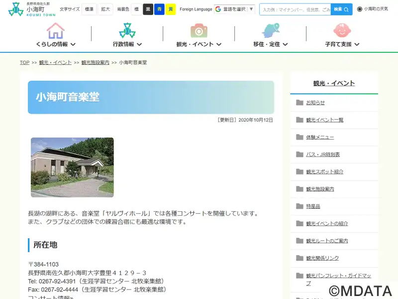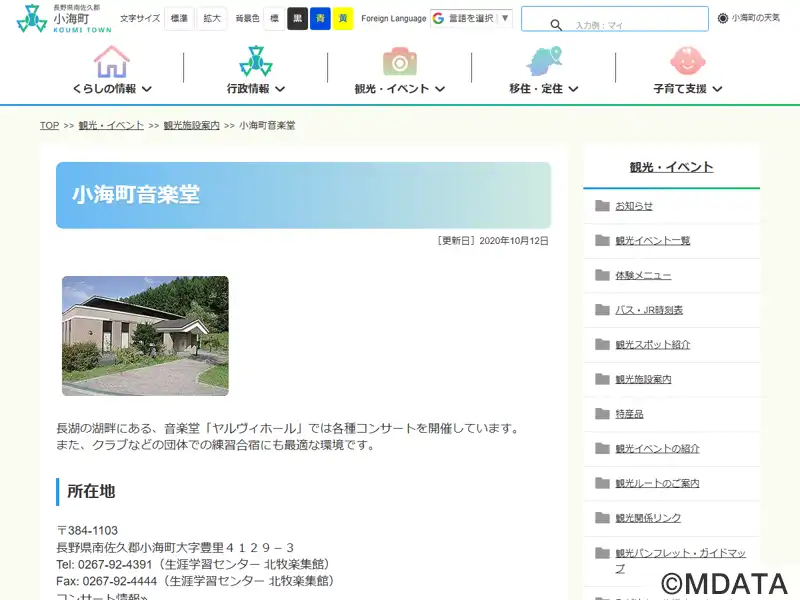 | 名称 | 小海町音楽堂 ヤルヴィホール |