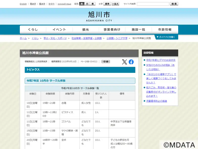 住所 | 旭川市神楽三条6丁目1-12 神楽市民交流センター2F |