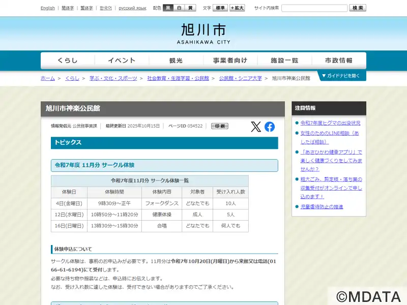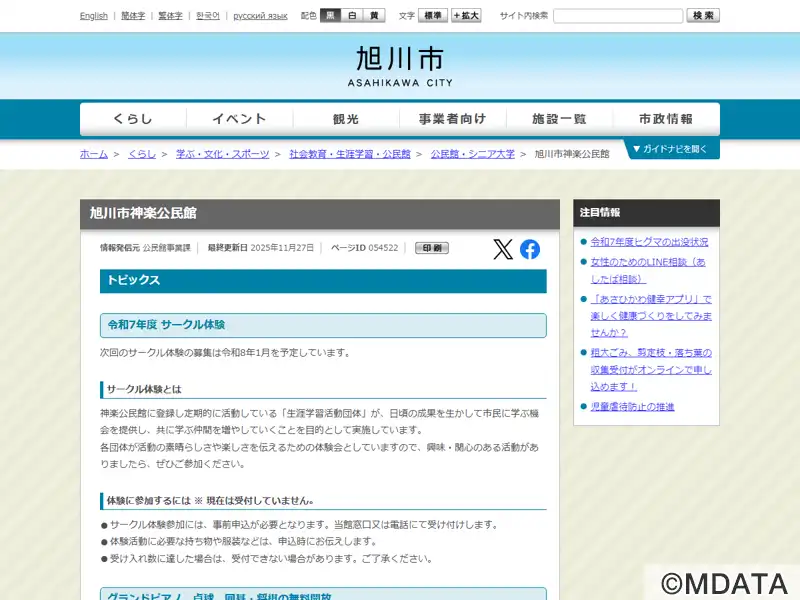 | 住所 | 旭川市神楽三条6丁目1-12 神楽市民交流センター2F |